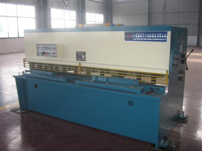 性能與特點(diǎn): 1.采用鋼板焊接結(jié)構(gòu),液壓傳動(dòng),氮?dú)飧谆爻?,操作方便,性能可靠,外形美觀。 2.刃口間隙調(diào)整有指示牌指示,調(diào)整輕便迅速。 3.設(shè)有燈光照明裝置,并能無級(jí)調(diào)節(jié)上刀架的行程量。 4.工作區(qū)采用柵欄式人身安全保護(hù)裝置。 5.后擋料尺寸及剪切次數(shù)有數(shù)字顯示裝置。